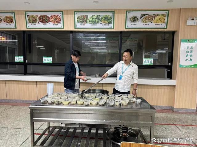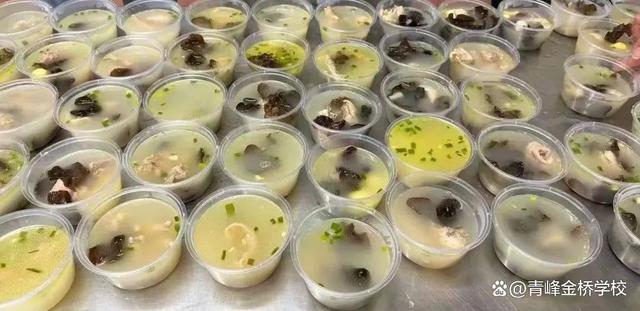 青峰为确保学生的饮食健康,考试来临之前,根据膳食营养均衡搭配的原则,保证学生的健康饮食,学生正是在发育的关键时期,学习压力较重,因此,为充分保证蛋白质,青峰为学生们带来了鸡汤。